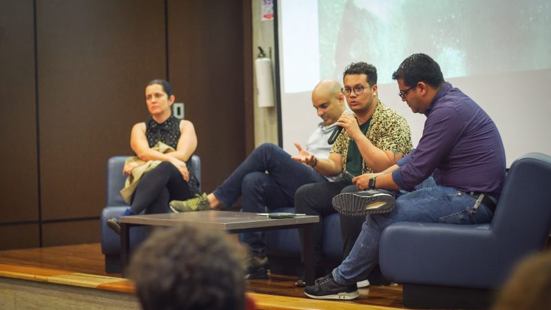 Finalizando esta jornada del Viernes se realizó un conversatorio donde estuvieron representantes de diferentes sectores, así: Alejandro Ríos, desde la academia como Director de la Facultad de Diseño, Comunicación y Bellas Artes de Areandina Pereira, Ángela Molina hablando desde la gestión cultural y Jacobo Álvarez como músico y creativo, abordando temas relacionados a las economías culturales e industrias creativas, discutiendo ideas y realidades desde experiencias personales y colectivas. Concluyendo que el sector cultural y creativo si puede generar emprendimientos enfocados a la industria y lucro, pero que no todos los proyectos nacieron para generar lucro y escalarse de manera masificada. Aquí se entiende que la Economía Naranja, si bien ha sido un boom desde el discurso gubernamental, se debe entender la sensibilidad del artista, creador o creativo, la naturaleza del proyecto y las necesidades de estos agentes que promueven espacios, productos y servicios que nacen en su mayoría para impactar procesos sociales y culturales de los territorios.