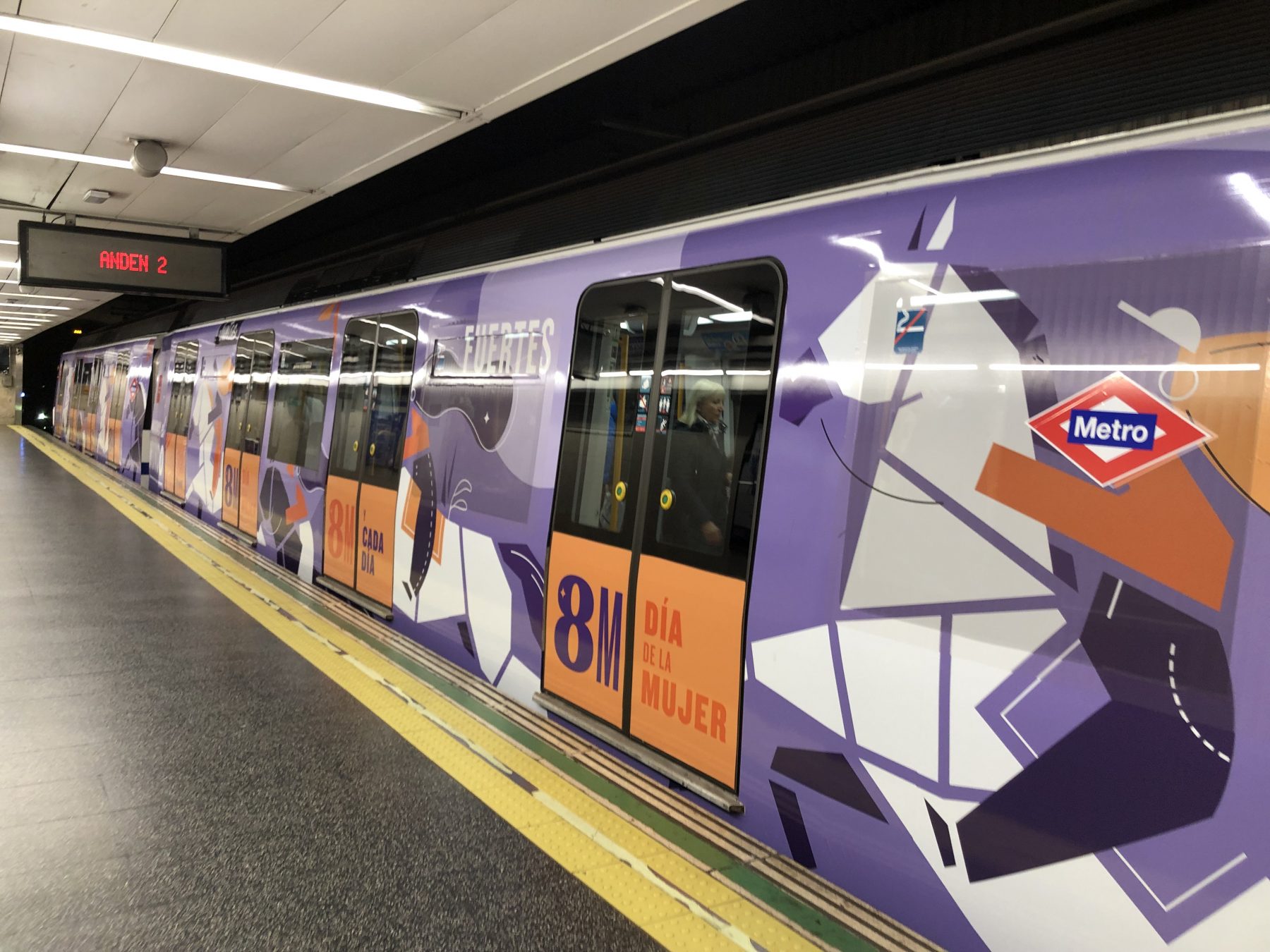 @ByAlejandroAguirre Dentro de mi recorrido habitual en la ciudad Madrid, está incluida la línea 6 del metro. Para mi sorpresa, un convoy de seis trenes no presentaba la publicidad habitual, sino que estaba ilustrado con motivo del 8M. Esta intervención conseguía llegar así a un número ingente de personas que deben realizar sus recorridos en metro, cantidad de personas que quizá