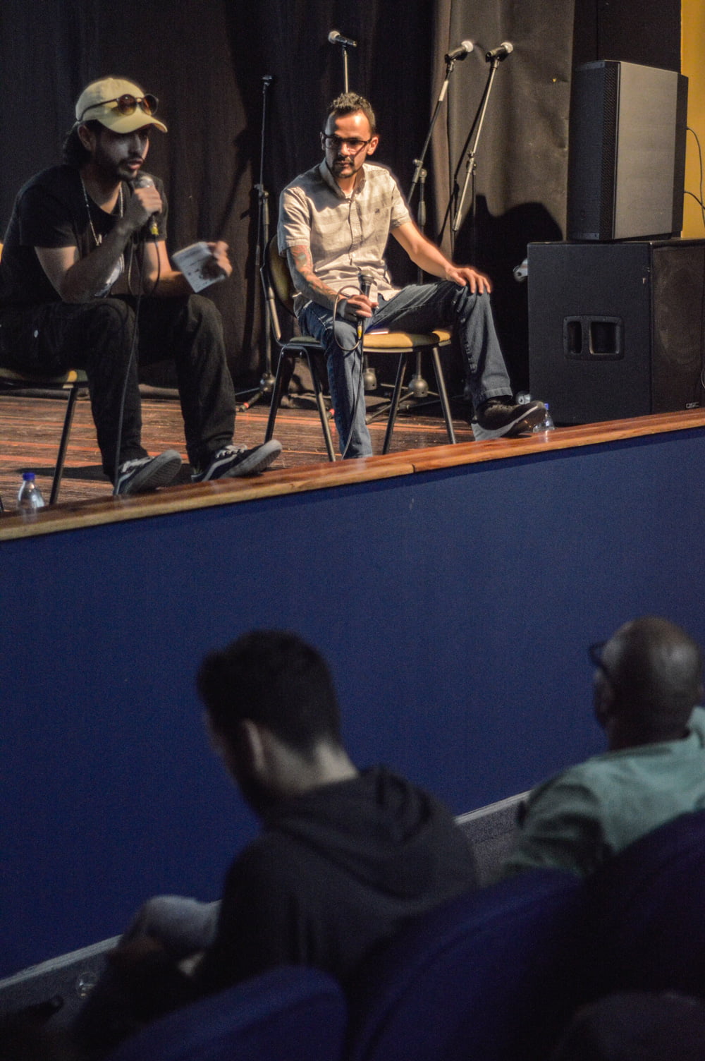 Hugo Rubiano (Director General) y Daniel Gómez (Productor Ejecutivo) durante su conferencia Vivir del Arte en el Ciclo de Formación SUR-REAL de La Astilla en el Ojo